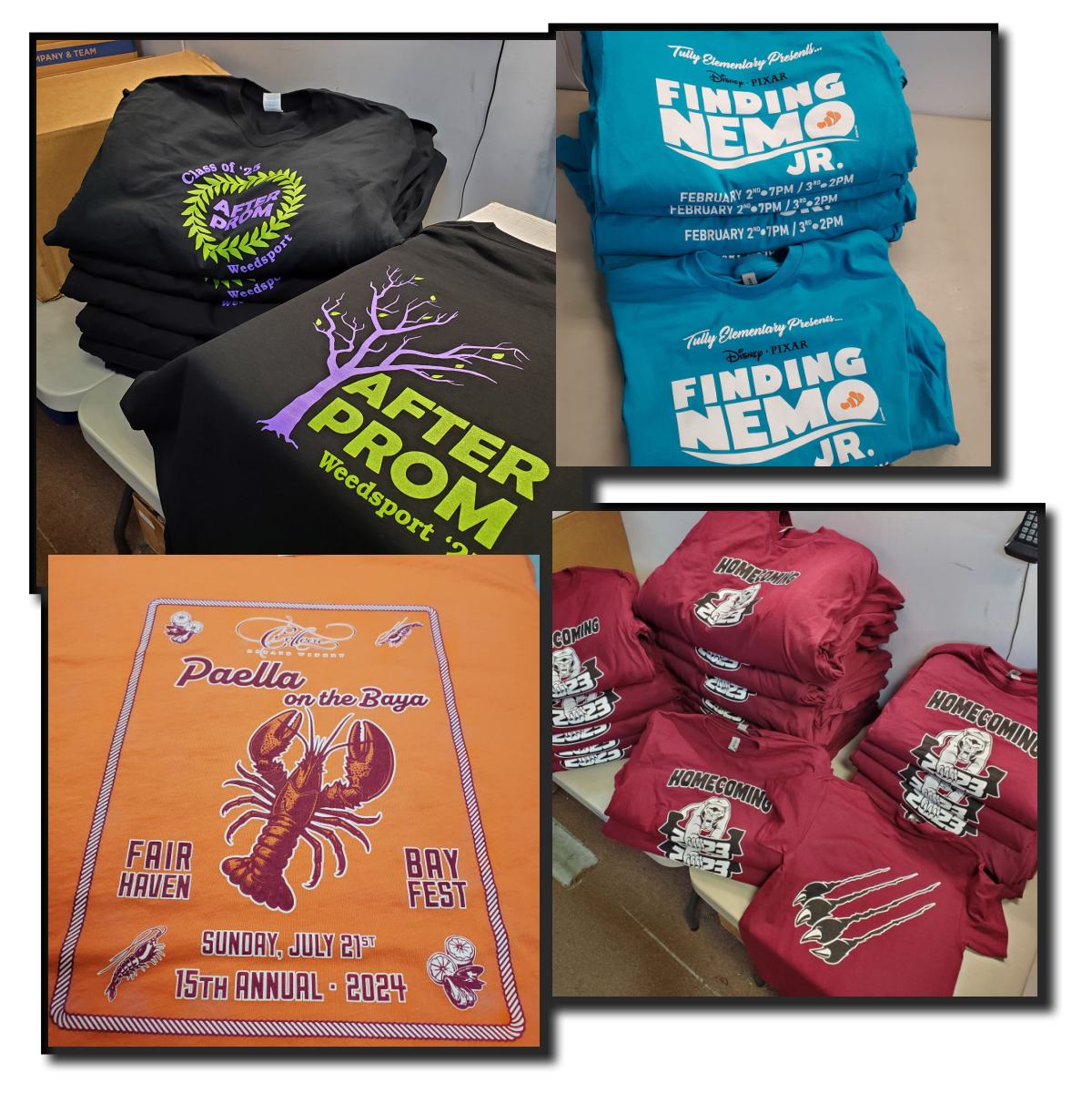 It needs to be discussed if these will go on multiple color items as the artwork is normally designed to use some of the color of the shirt it’s being printed on.